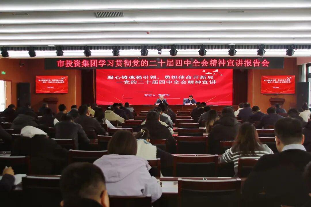 为深入学习贯彻党的二十届四中全会精神,切实把全体干部职工的思想和行动统一到党中央决策部署上来,2025年12月19日,市投资集团召开党的二十届四中全会精神专题宣讲报告会。集团党委书记、董事长黄甫军作专题宣讲报告,公司领导班子成员、机关全体干部职工,各子公司班子成员及各党支部书记、党务工作者参加会议。