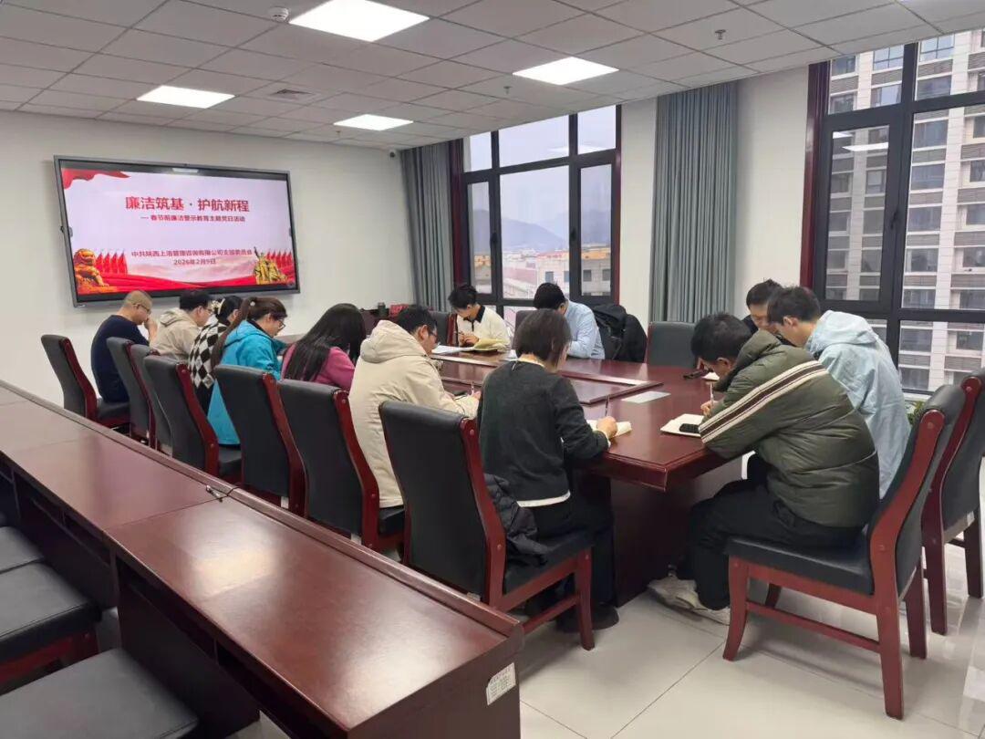为筑牢廉洁防线、营造清朗节日氛围,2月9日,咨询公司党支部开展“廉洁筑基・护航新程”节前廉政警示教育主题党日活动,公司全体员工参加本次活动。